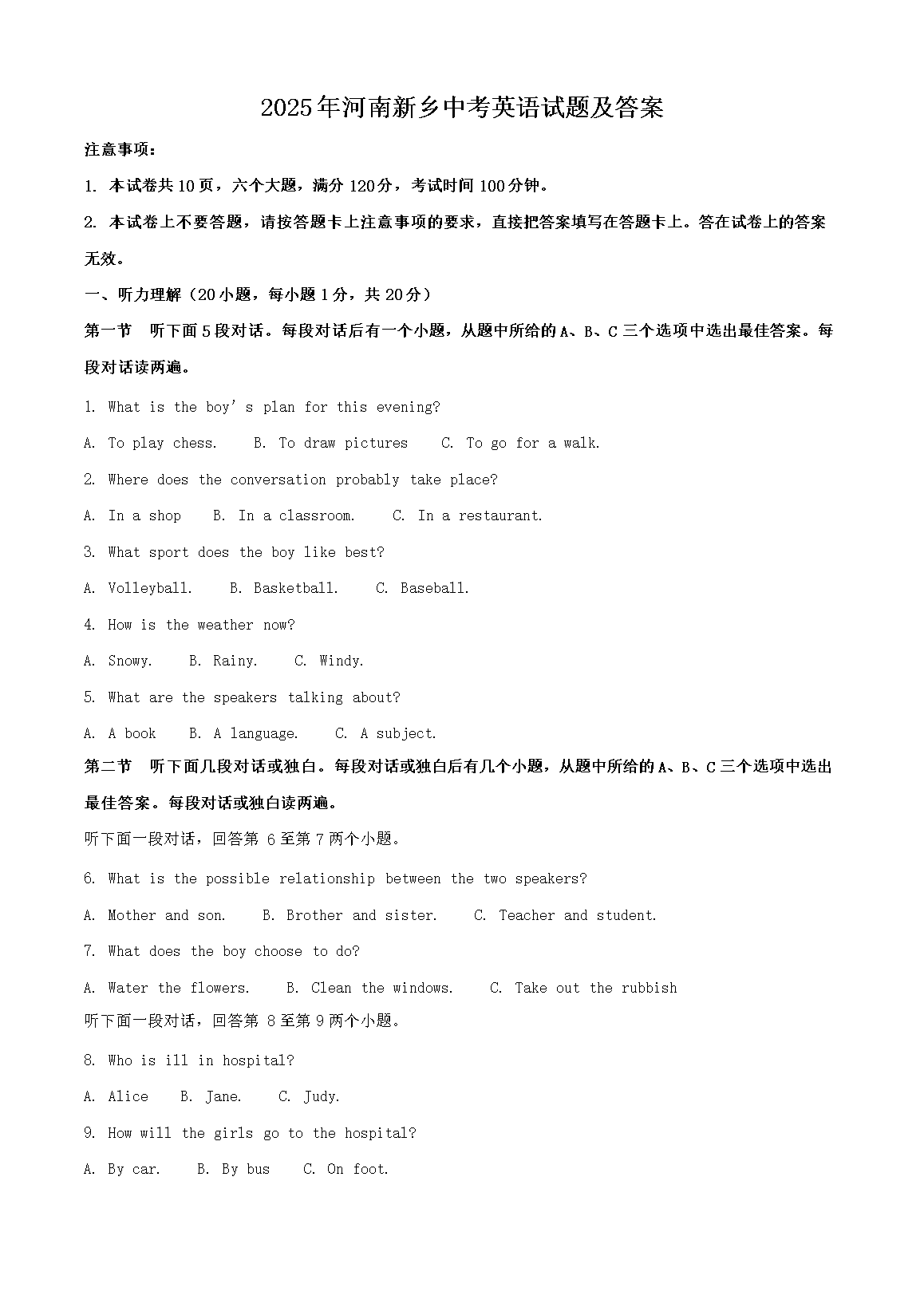 【文档名称】 2025年河南新乡中考英语试题及答案(Word版).doc