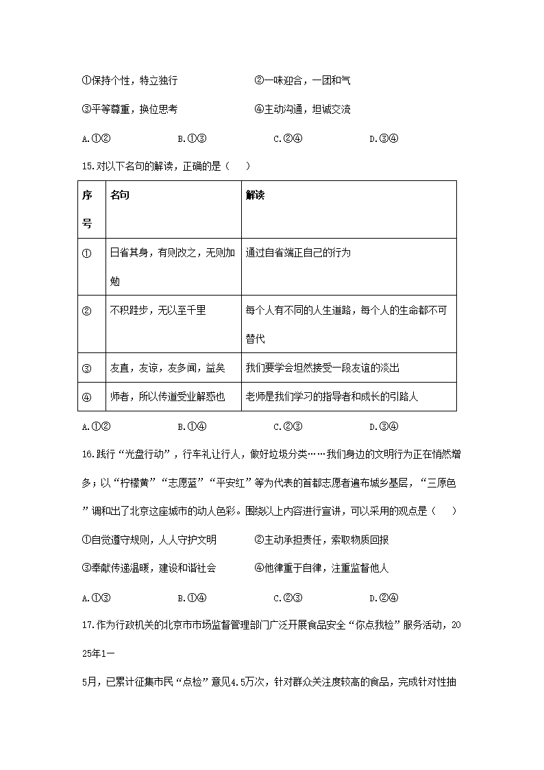 【文档预览】 无忧考网整理发布2025年北京中考道德与法治试题及答案(Word版),前五页预览如下: