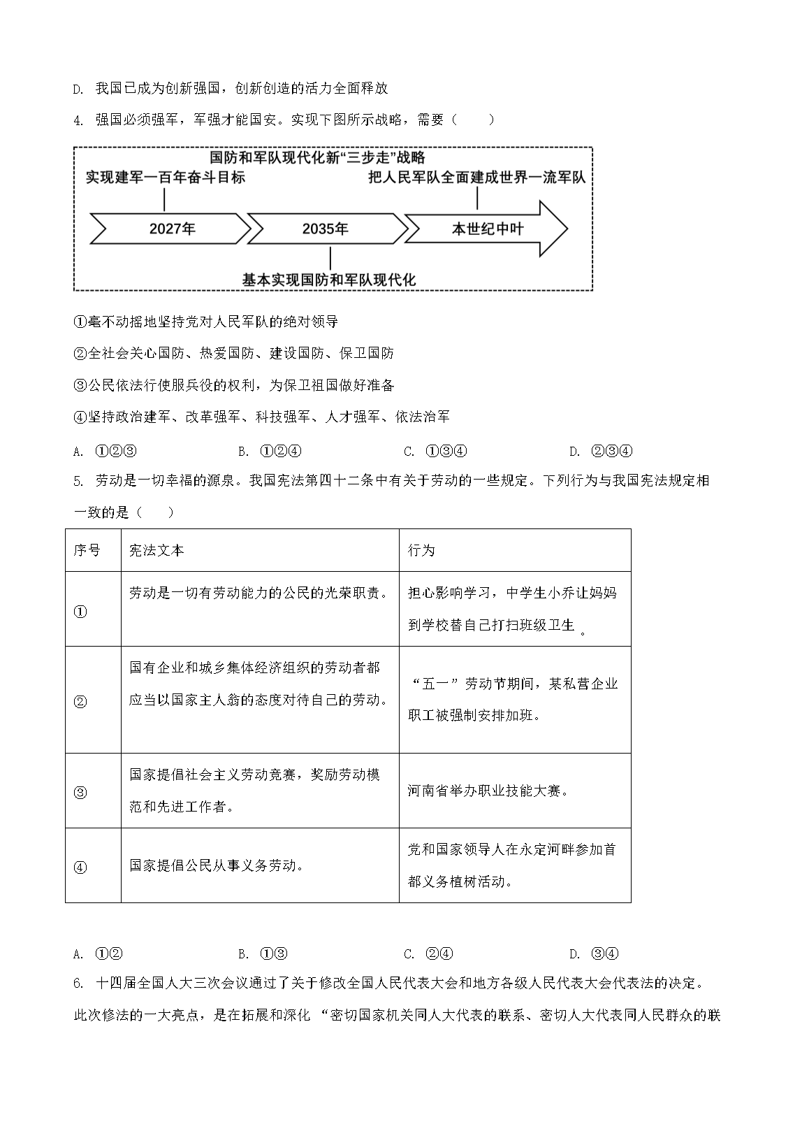 【文档名称】 2025年河南许昌中考道德与法治试题及答案(Word版).doc