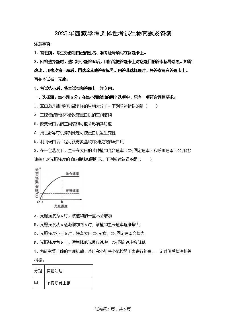 【文档预览】 无忧考网整理发布2025年西藏学考选择性考试生物真题及答案(Word版),前五页预览如下:
