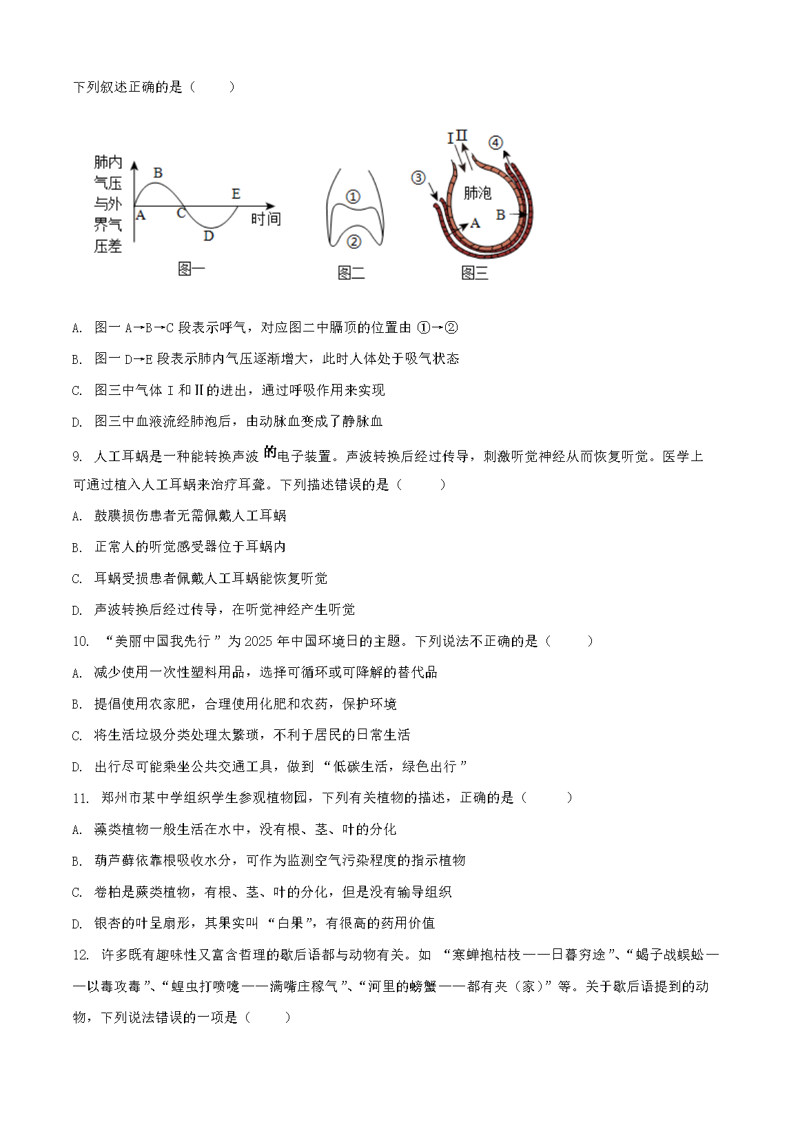 【文档名称】 2025年河南周口中考生物试题及答案(Word版).doc