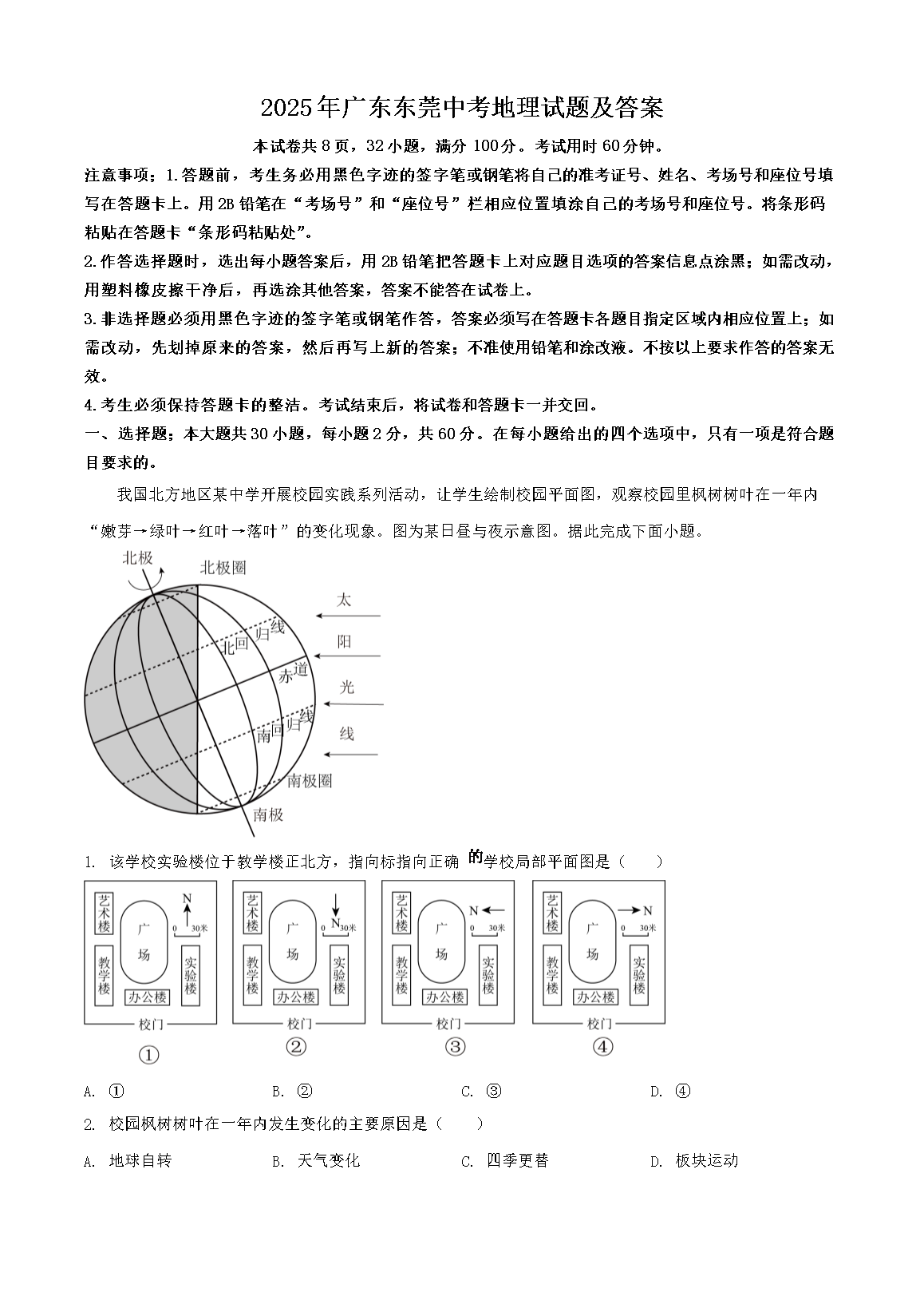 【文档名称】 2025年广东东莞中考地理试题及答案(Word版).doc