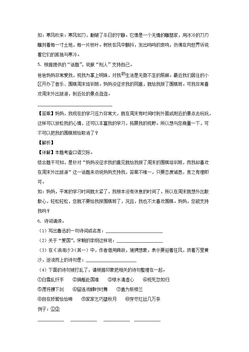 - 2022-2023年山东省潍坊市高新区六年级上册期末语文试卷及答案(部编版)