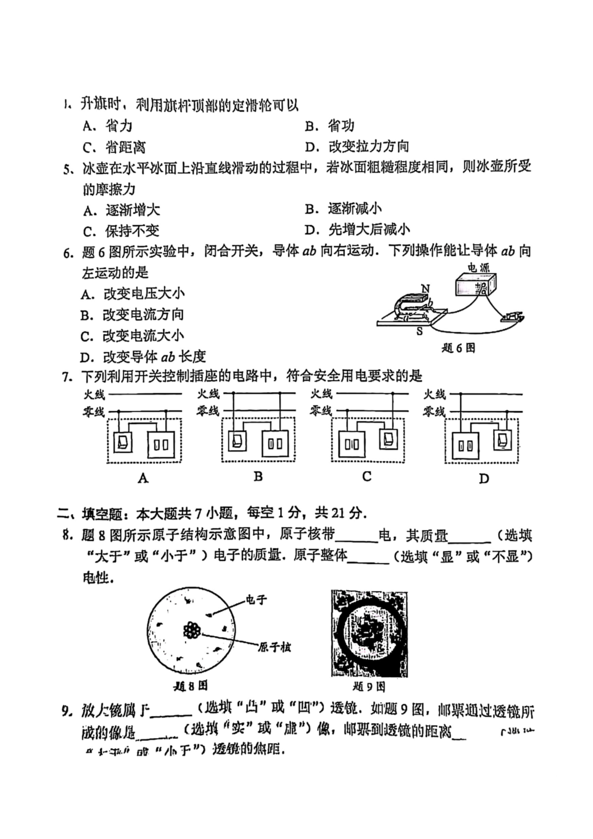 【文档名称】 2025年广东佛山中考物理真题及答案(图片版).doc