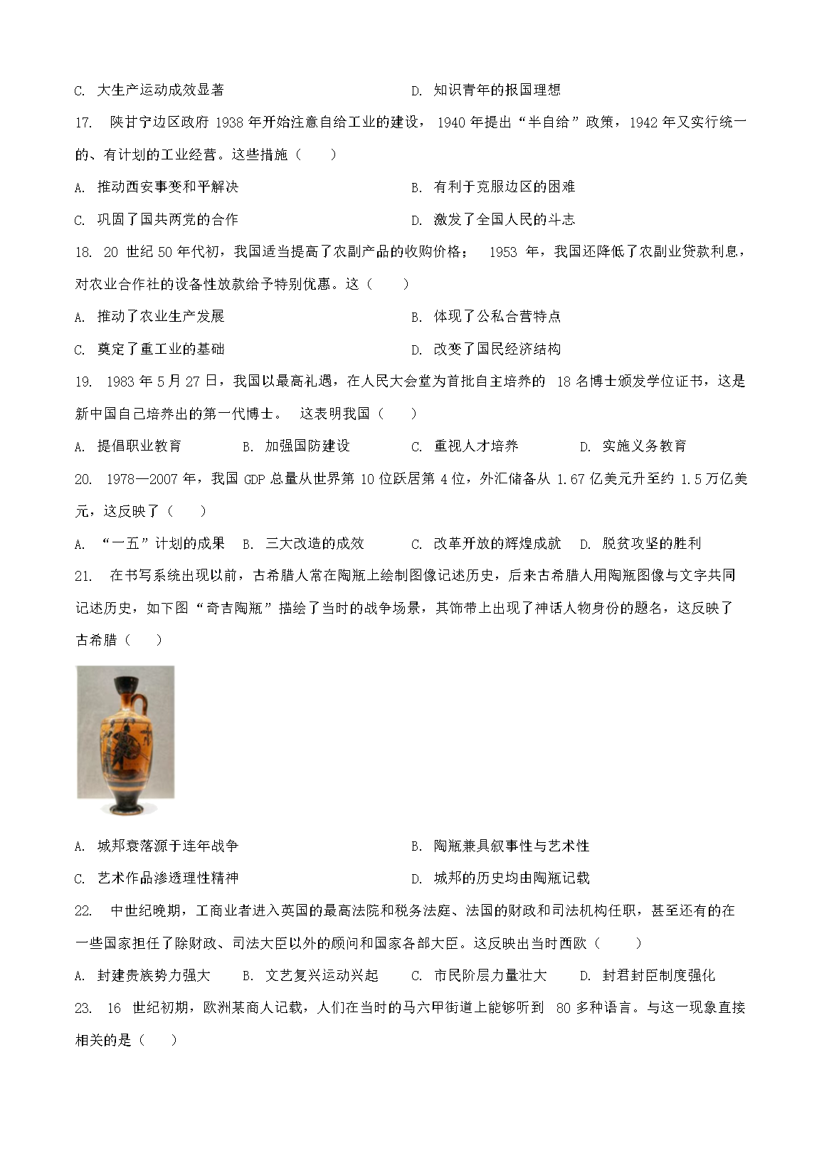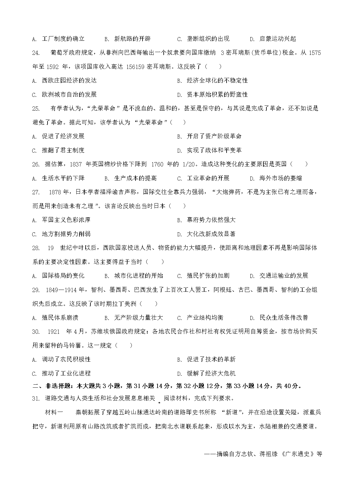 【文档名称】 2025年广东韶关中考历史试题及答案(Word版).doc