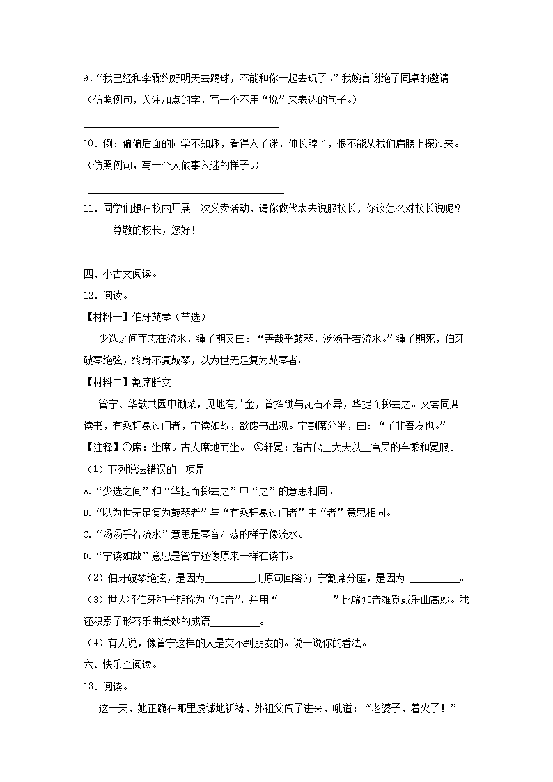 - 2022-2023年山东省潍坊市高新区六年级上册期末语文试卷及答案(部编版)