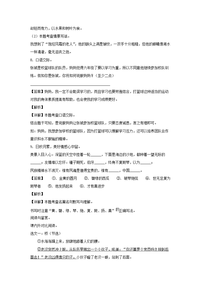 - 2022-2023年山东省潍坊市高新区六年级上册期末语文试卷及答案(部编版)