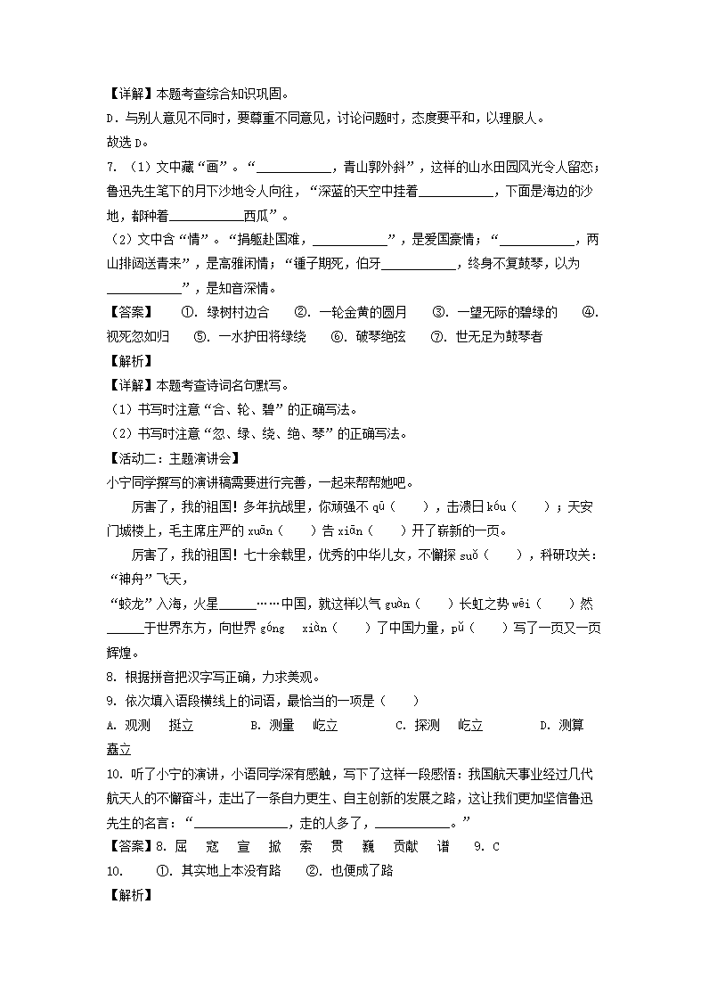 【文档名称】 2023-2024年山东省青岛市西海岸新区六年级上册期末语文试卷及答案(统编版)(Word版).doc