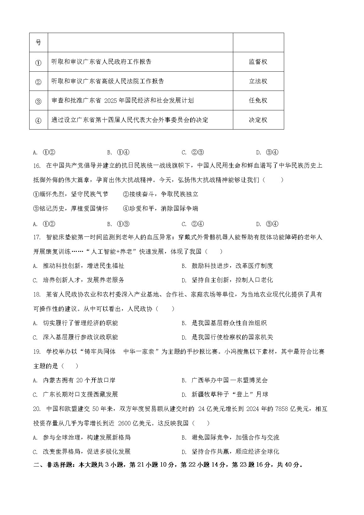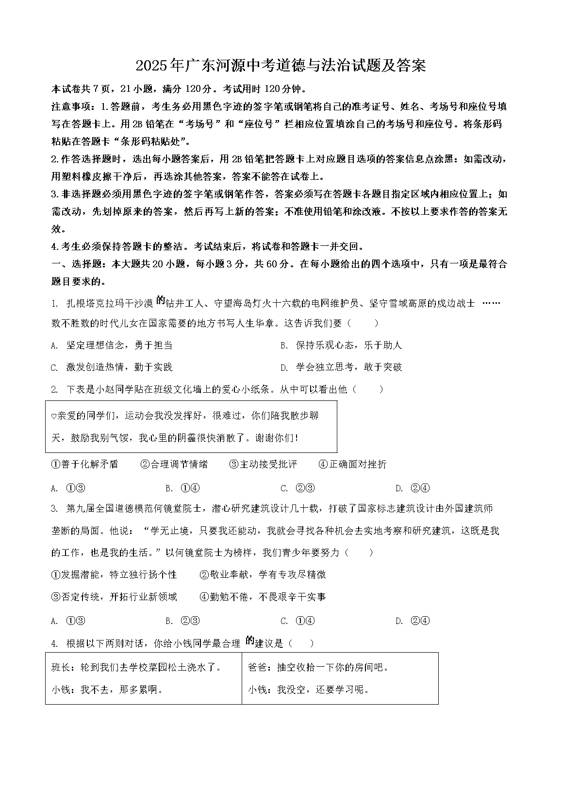 【文档名称】 2025年广东河源中考道德与法治试题及答案(Word版).doc