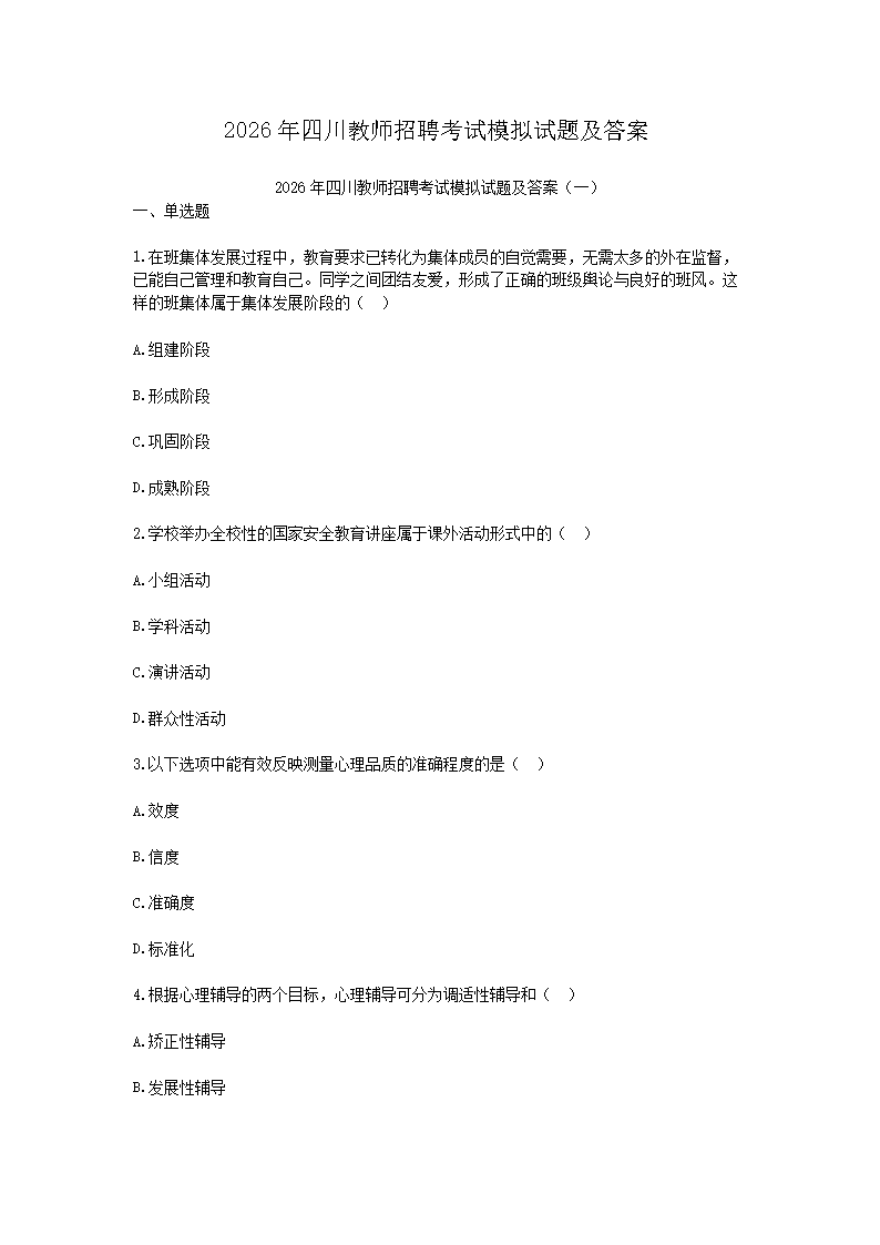【文档名称】 2026年四川教师招聘考试模拟试题及答案(Word版).doc