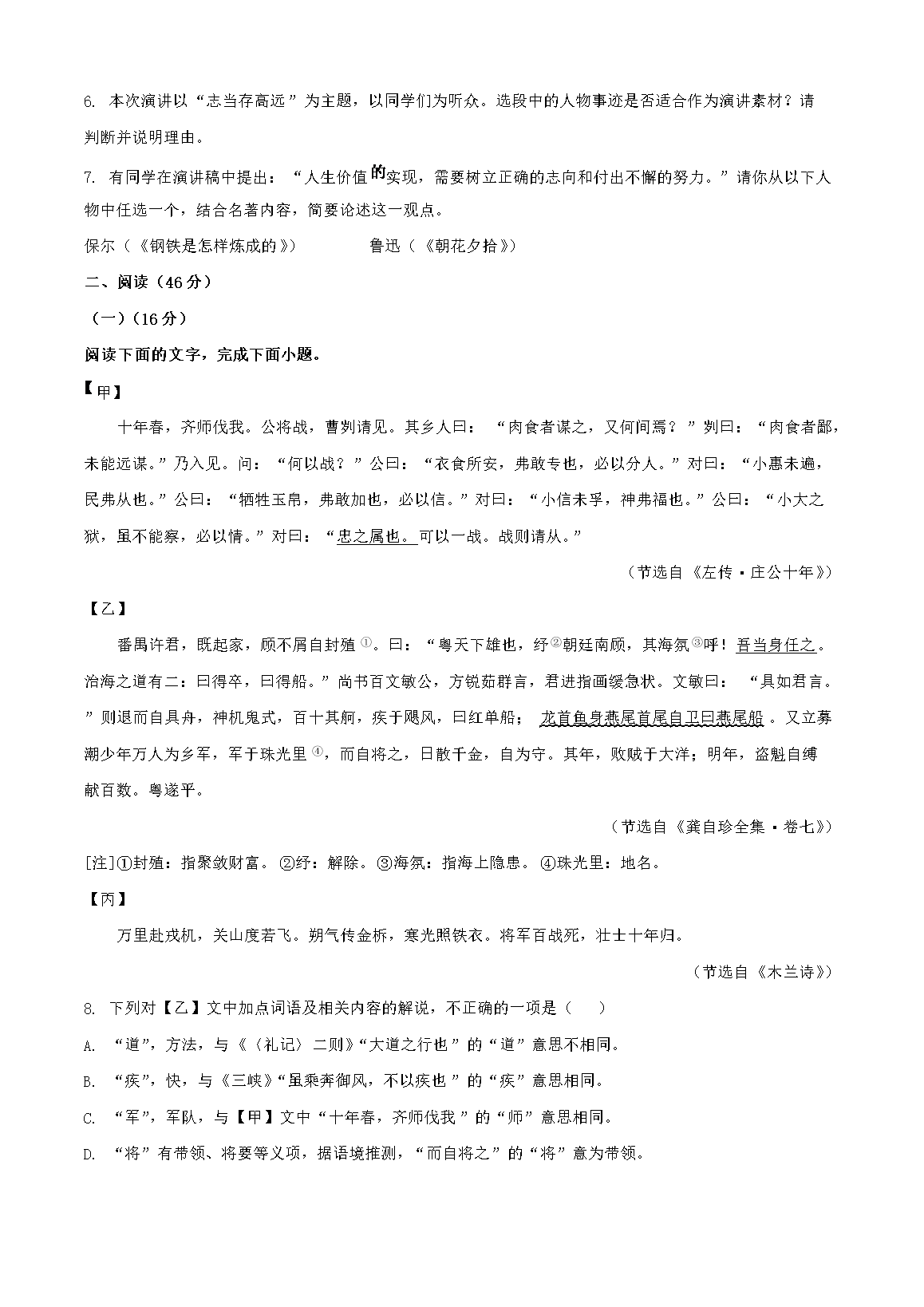【文档名称】 2025年广东惠州中考语文试题及答案(Word版).doc