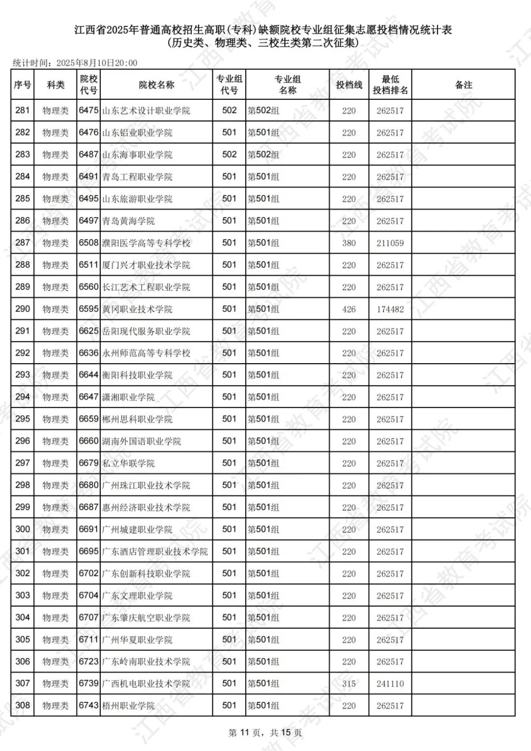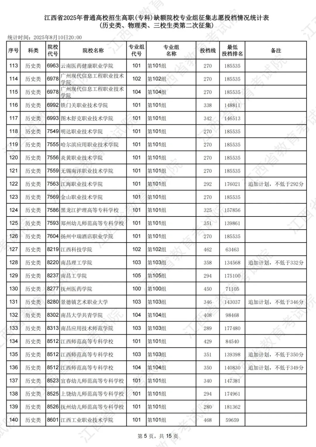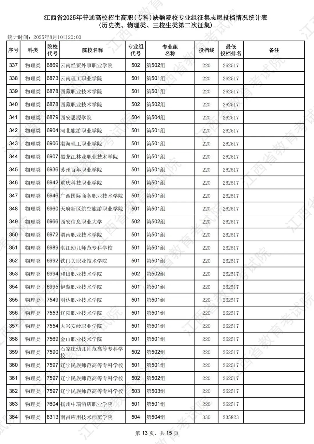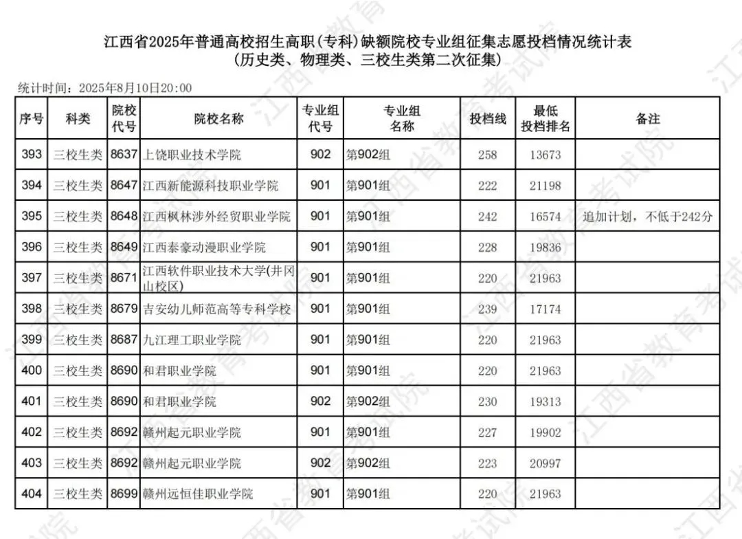 无忧考网从江西发布了解到,2025年江西高考高职(专科)最新分数(投档)线已公布,具体如下:
