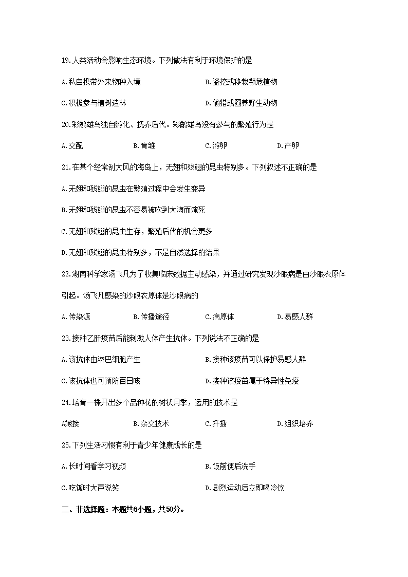 【文档预览】 无忧考网整理发布2025年湖南张家界中考生物试题及答案(Word版),前五页预览如下: