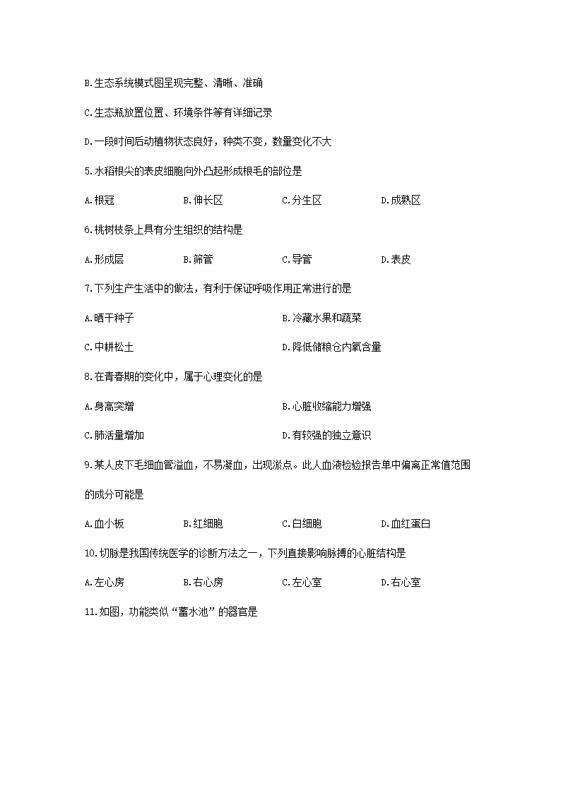 【文档名称】 2025年湖南张家界中考生物试题及答案(Word版).doc