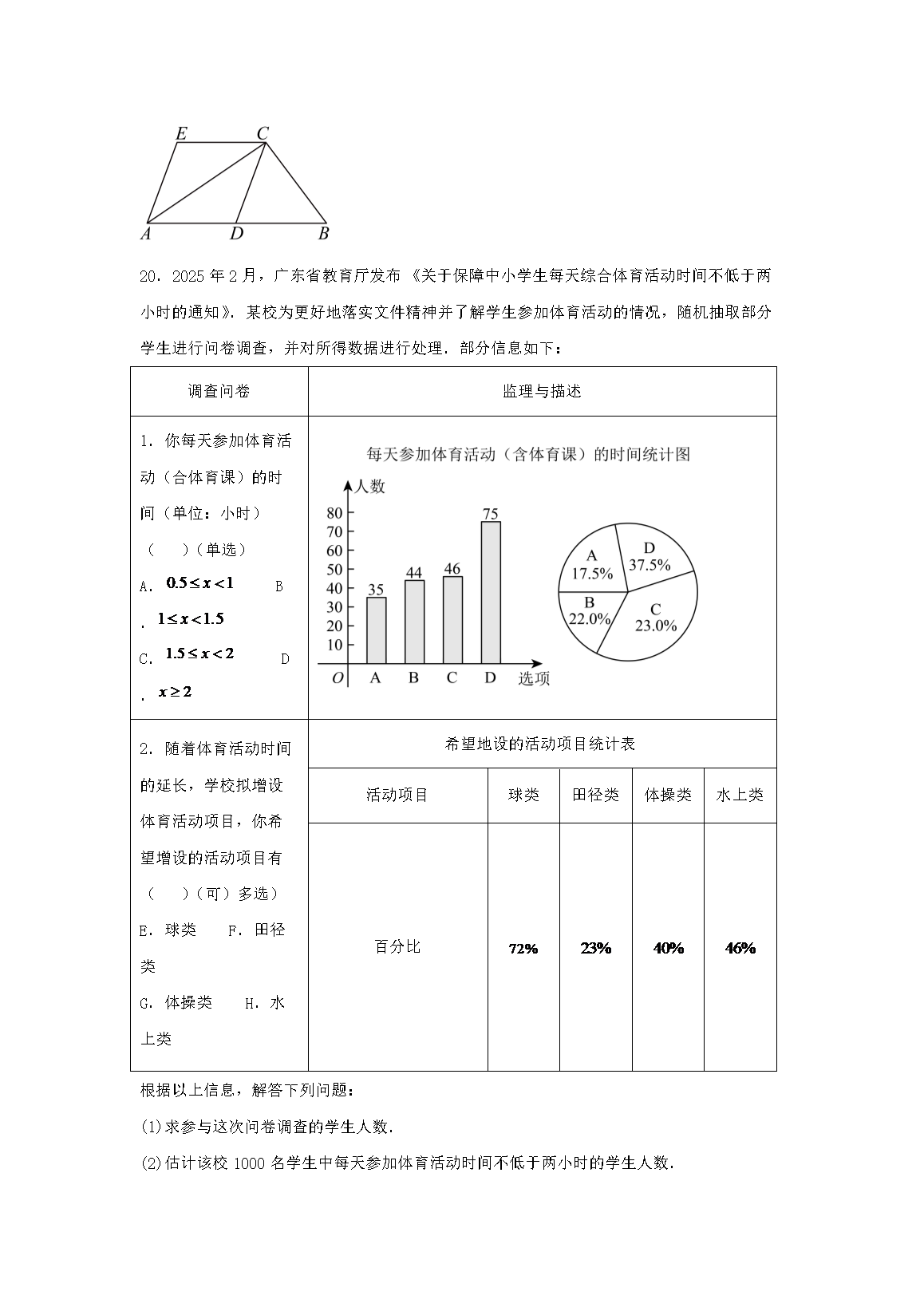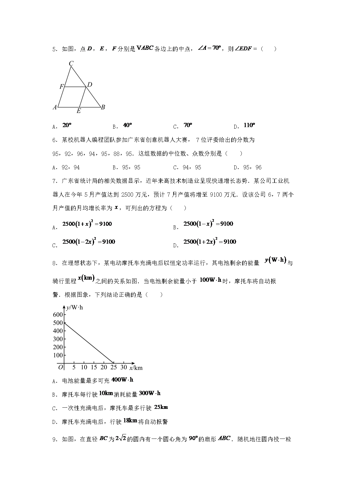 【文档名称】 2025年广东梅州中考数学试题及答案(Word版).doc