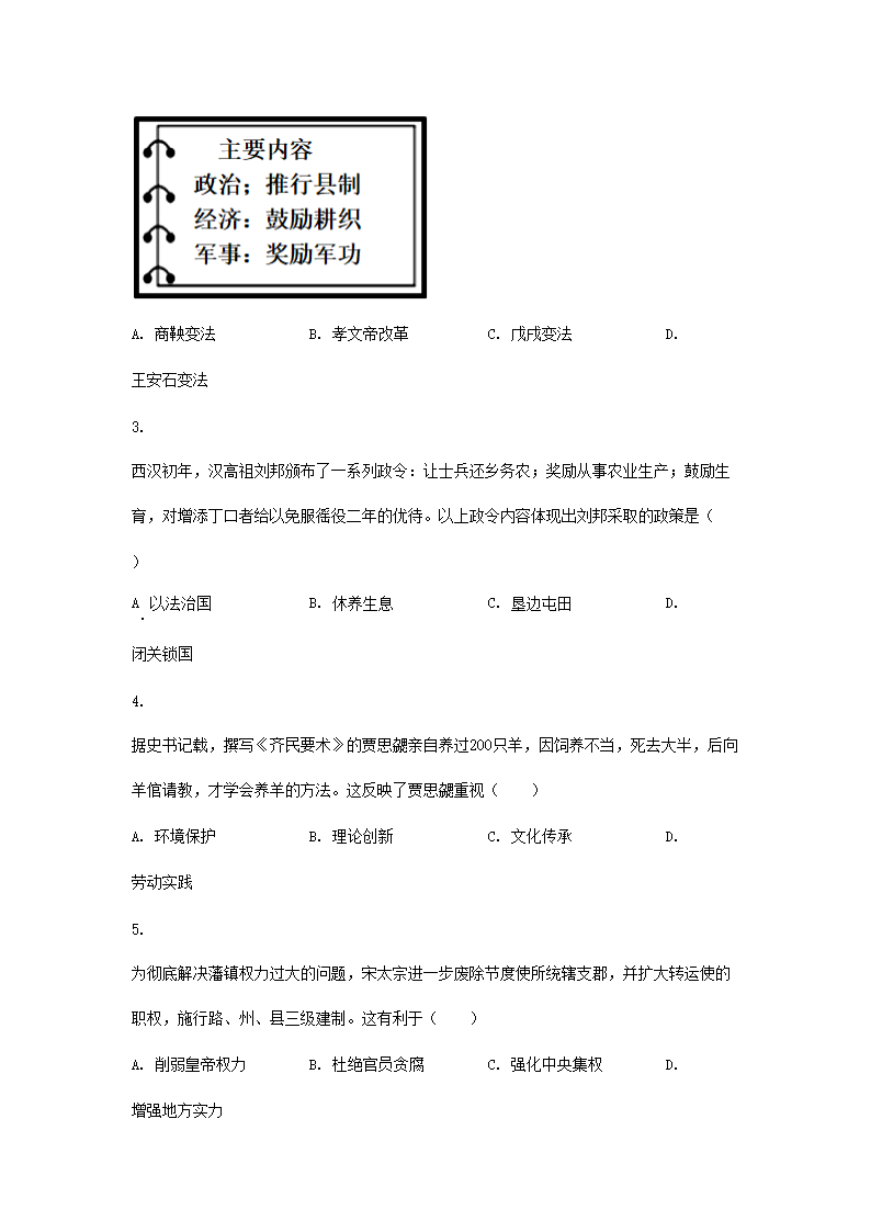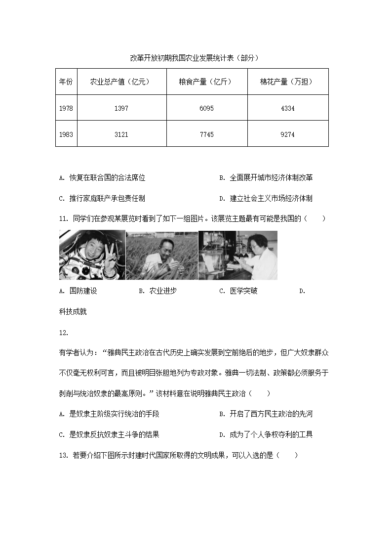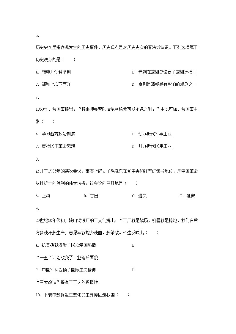 【文档名称】 2025年湖南永州中考历史试题及答案(Word版).doc