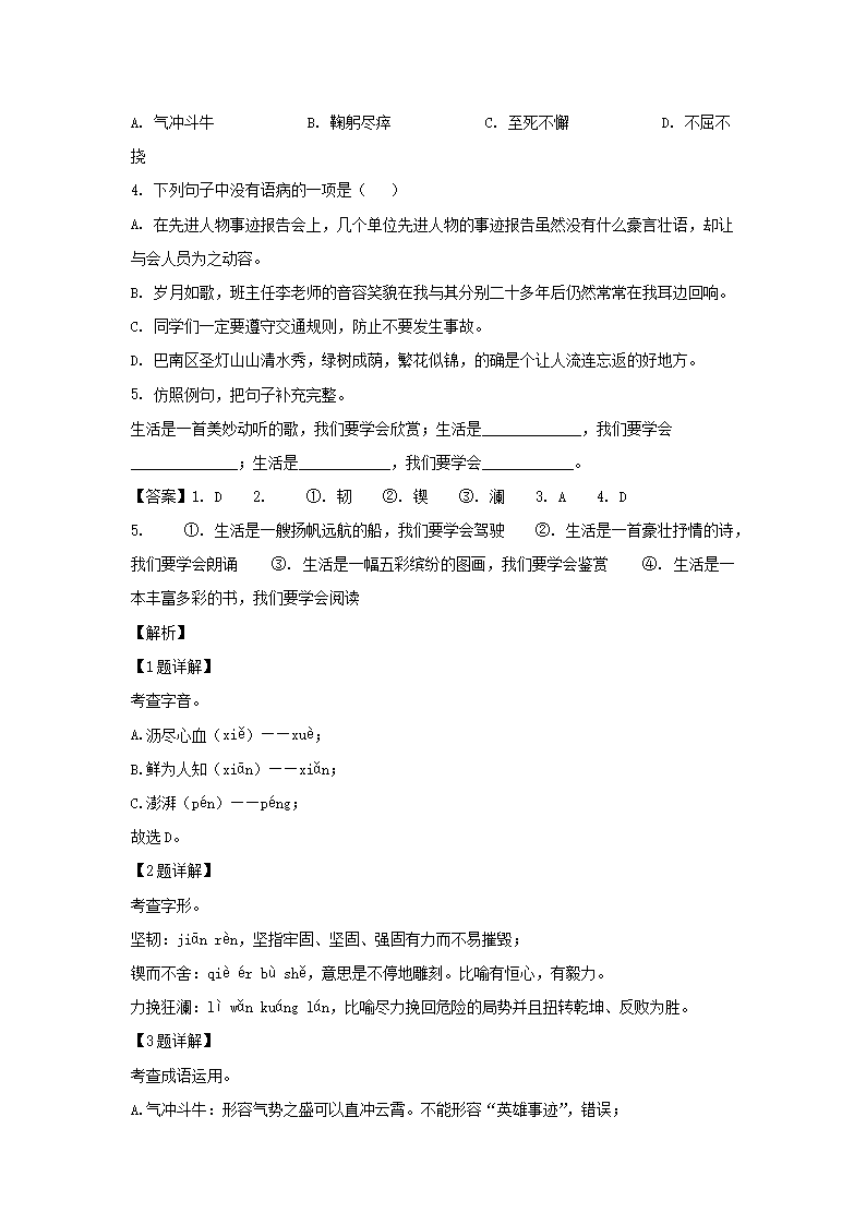 【文档预览】 无忧考网整理发布2022-2023学年重庆巴南区七年级下册语文第三次月考试卷及答案(Word版),前五页预览如下: