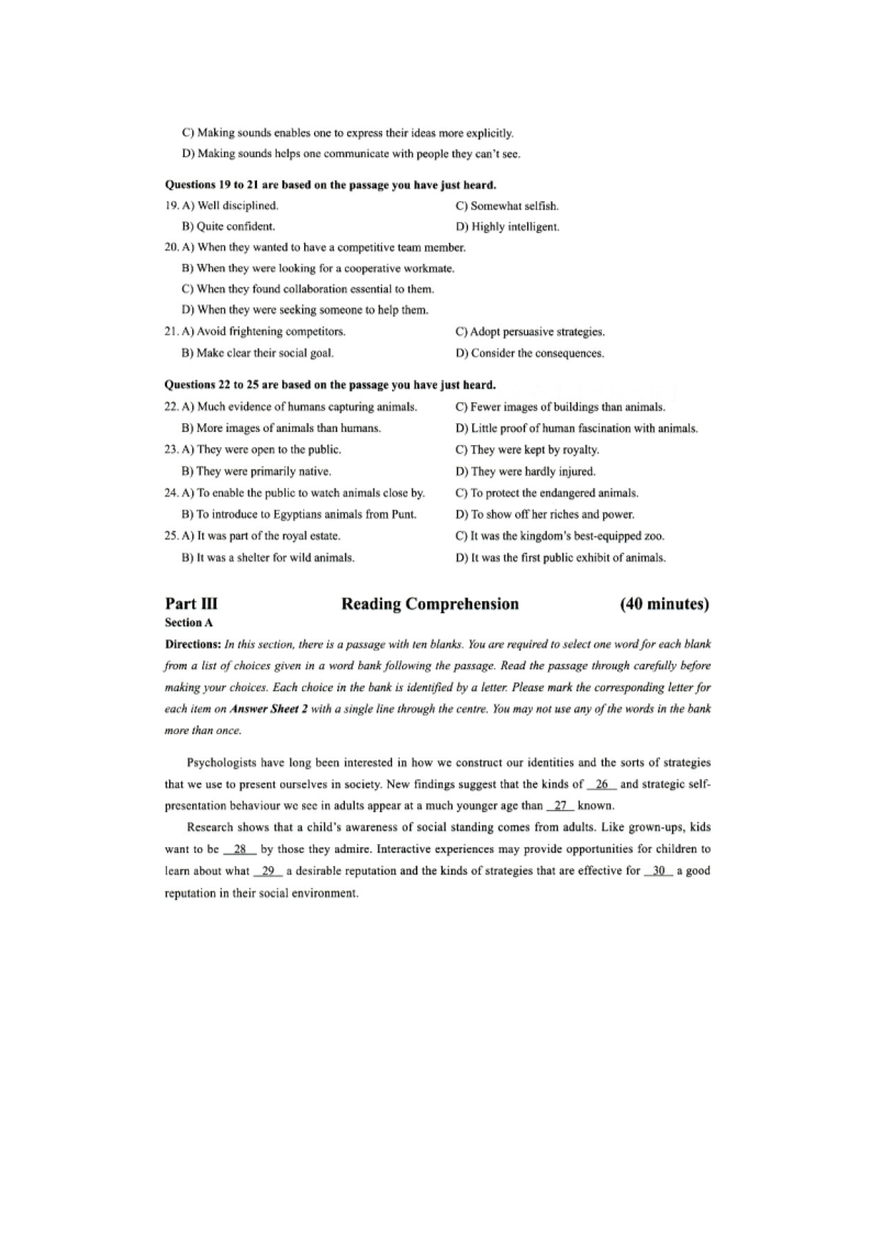 【文档预览】 无忧考网整理发布2025年6月英语四级真题及答案-第1套(图片版),前五页预览如下: