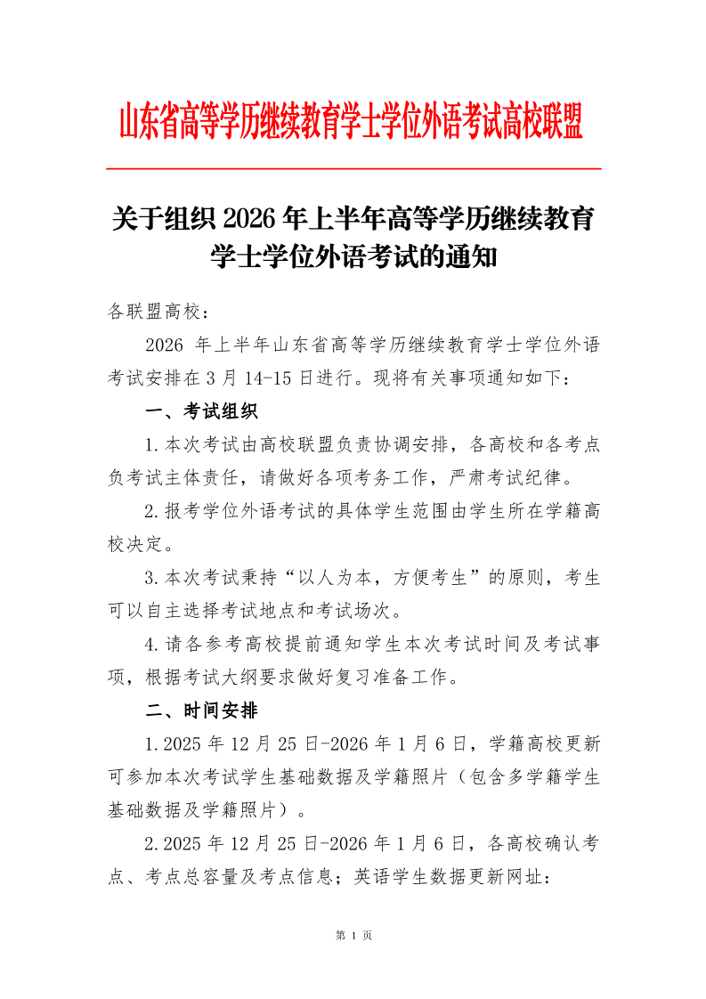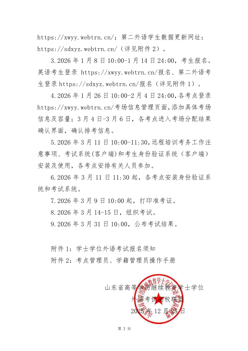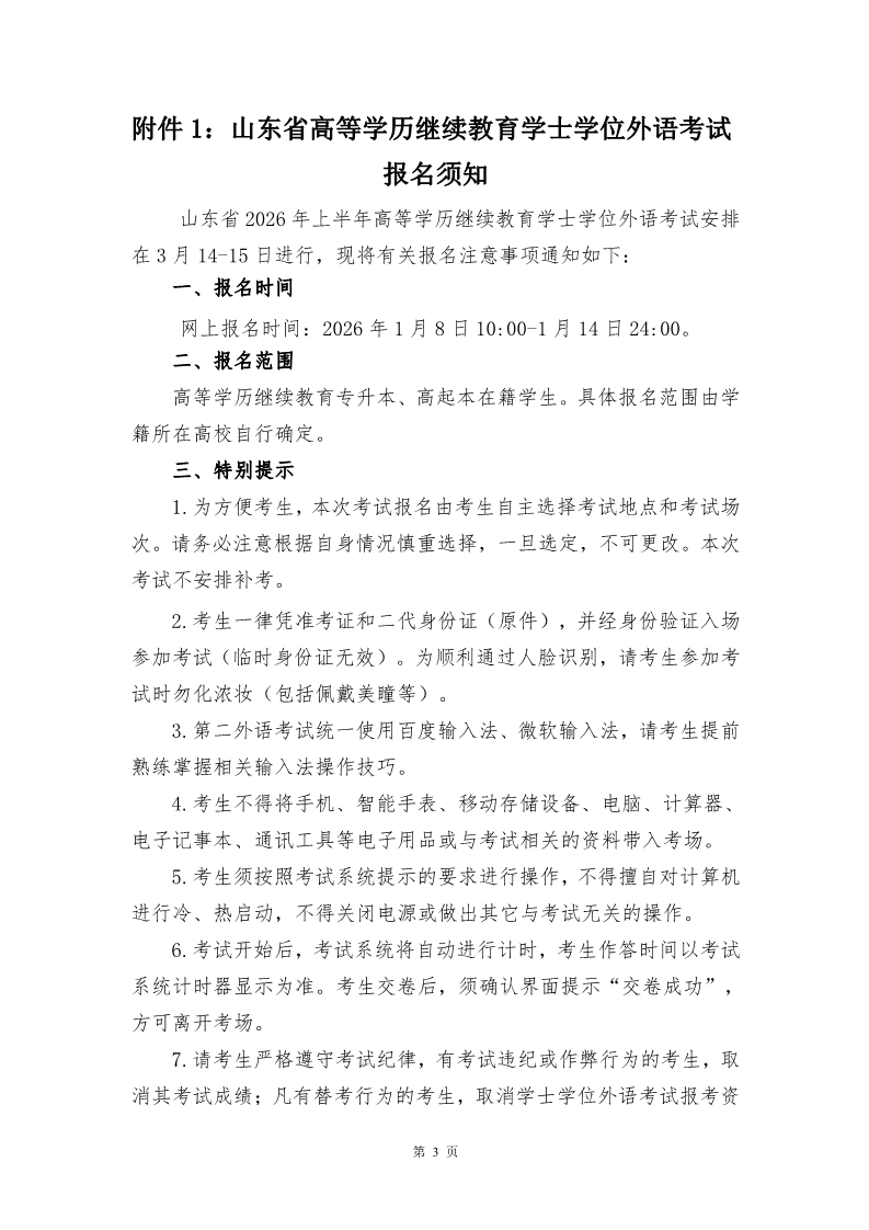 考网从山东省学士学位外语考试高校联盟获悉,2026上半年山东高等学历继续教育学士学位外语考试报名须知已公布,1月8日起报名,具体详情如下: