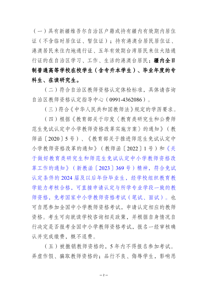 2024下半年新疆中小学和幼儿园教师资格认定公告