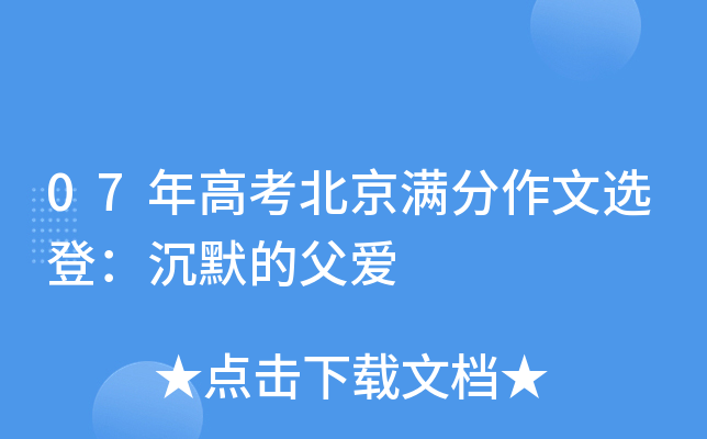 考场上。有一个孩子在写着沉默的父爱,心中充满感激与骄傲。