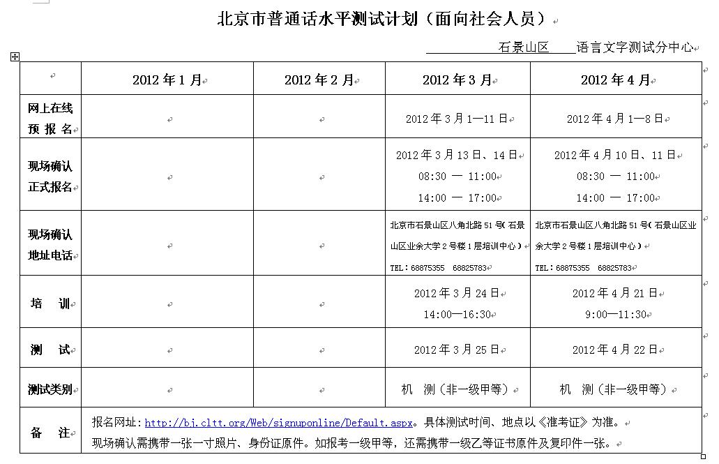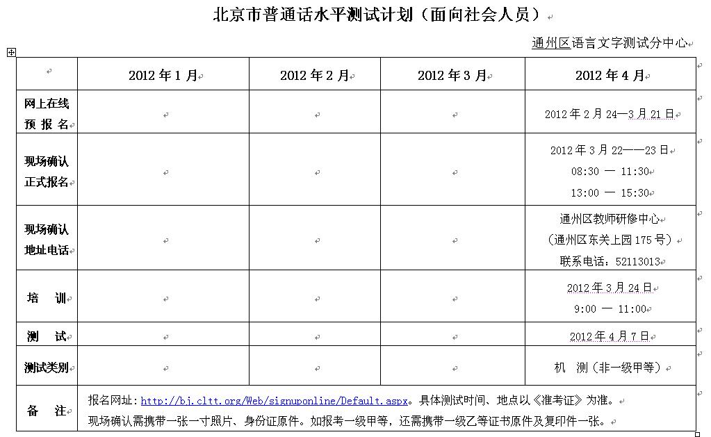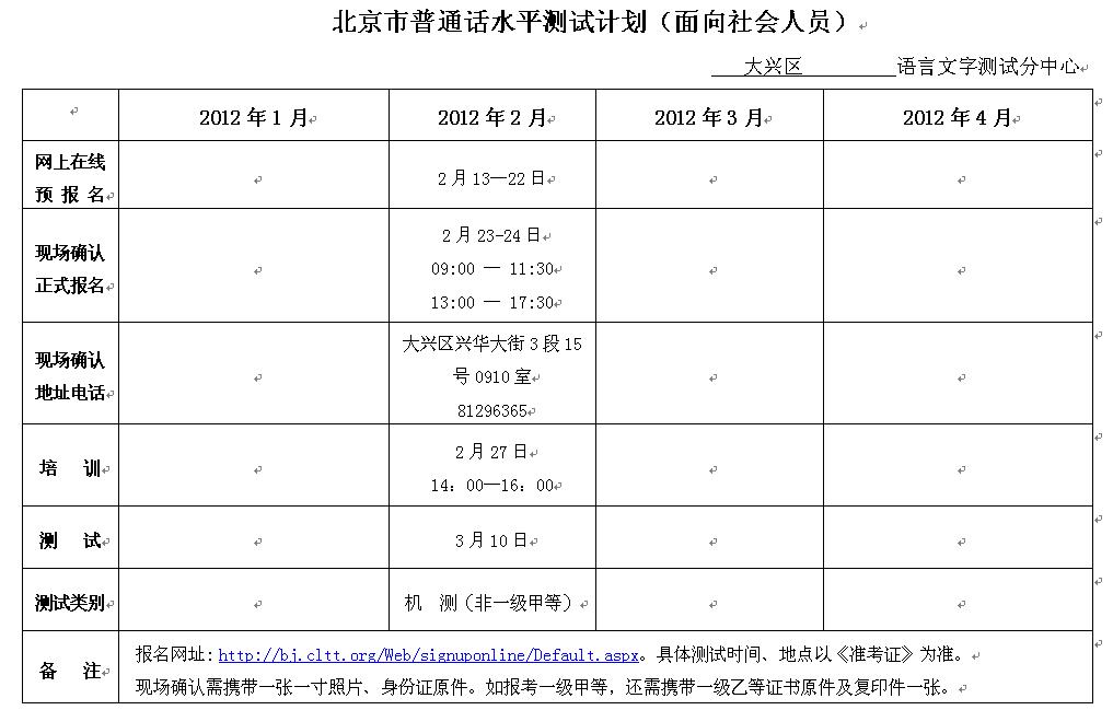1.报名网址: http://bj.cltt.org/Web/signuponline/Default.aspx。具体测试时间、地点以《准考证》为准。