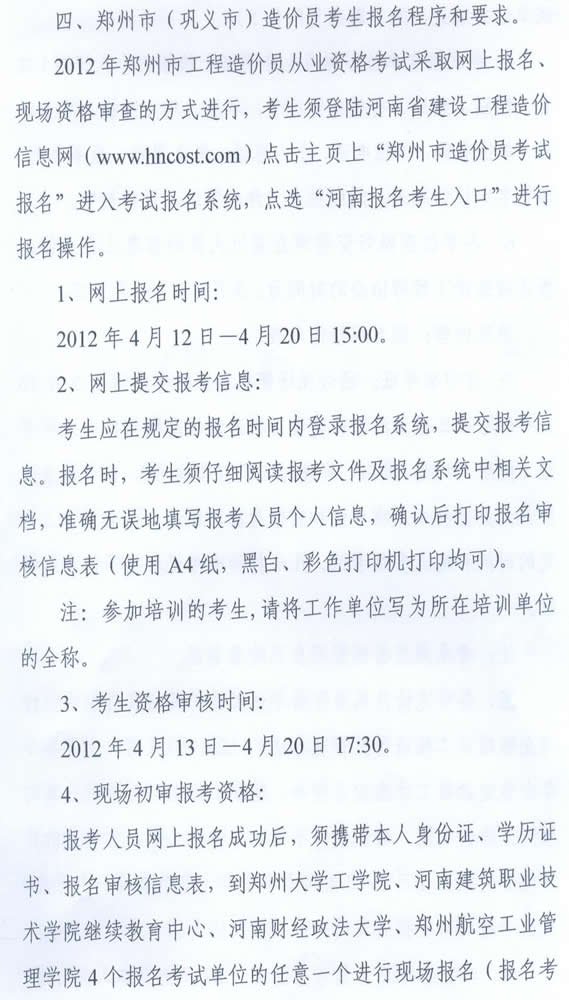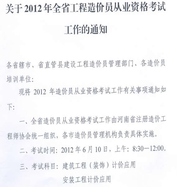 2012年河南造价员考试报名时间:4月27日前