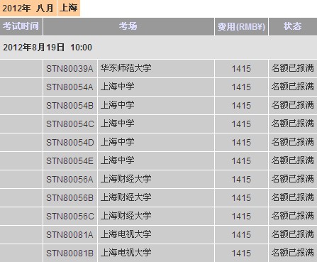 据教育部考试中心托福报名网站显示,目前,北京上海两地托福考位紧张:北京地区8-9月考位暂满;10月有部分剩余考位;上海地区8-10月考位暂满。通常考位暂满的近期会有新考位放出,请同学们随时关注,提前报名托福考试。