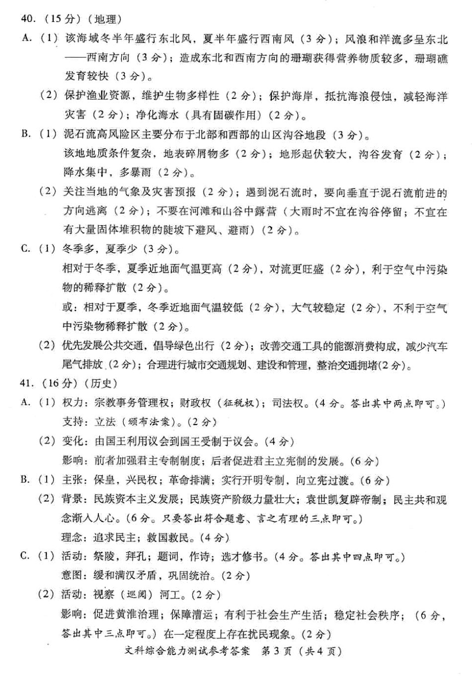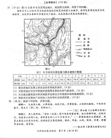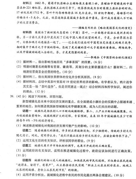 2013福建省质检文综试题及答案