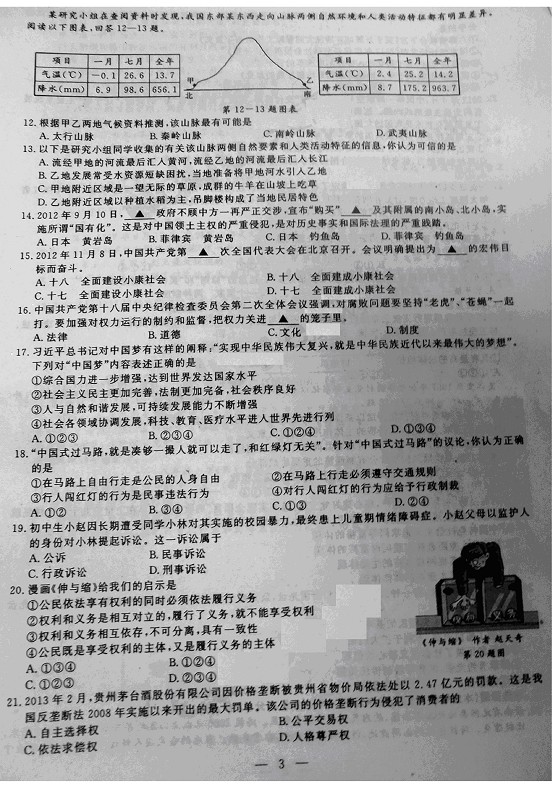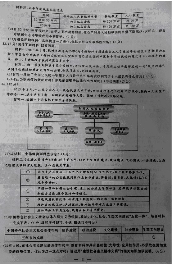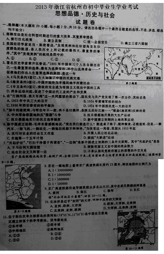 2023年浙江杭州中考道德与法治.历史与社会试题及答案