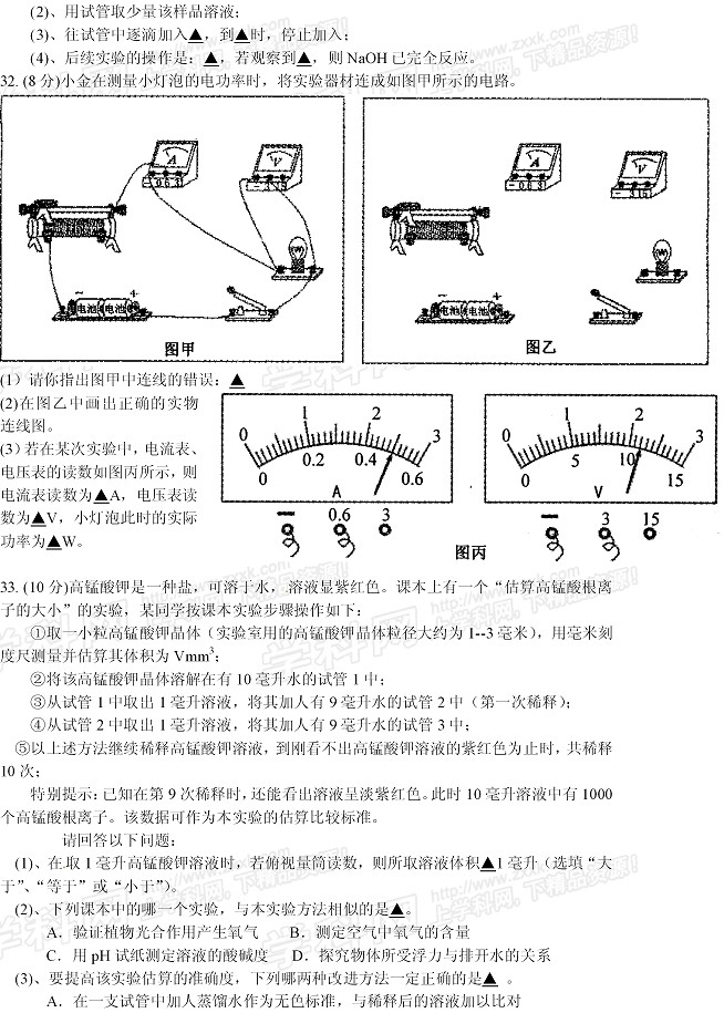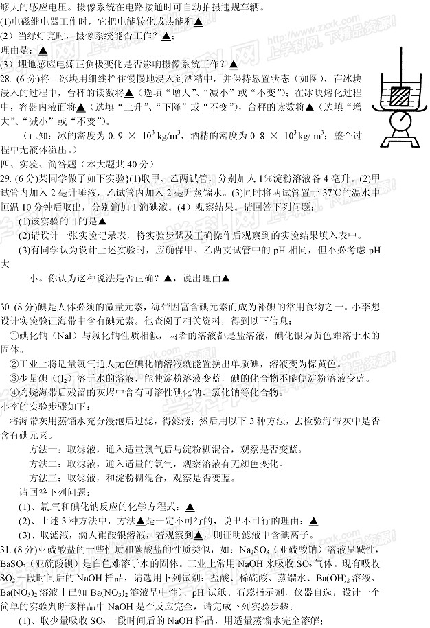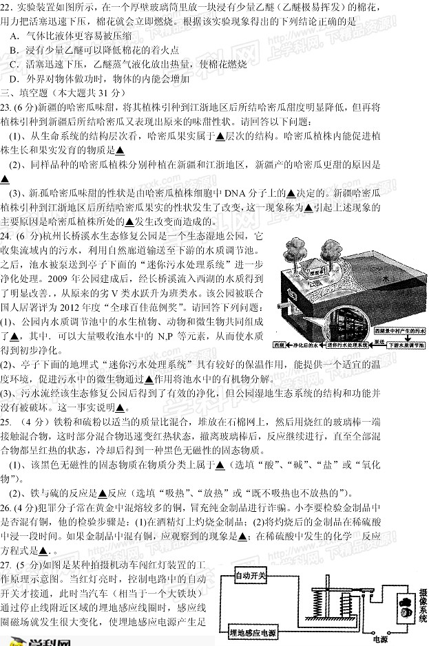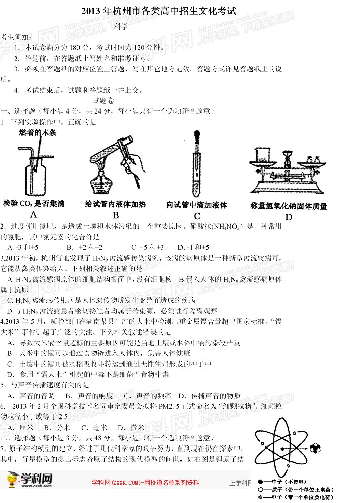 2013年浙江杭州中考化学试卷(完整版).docx