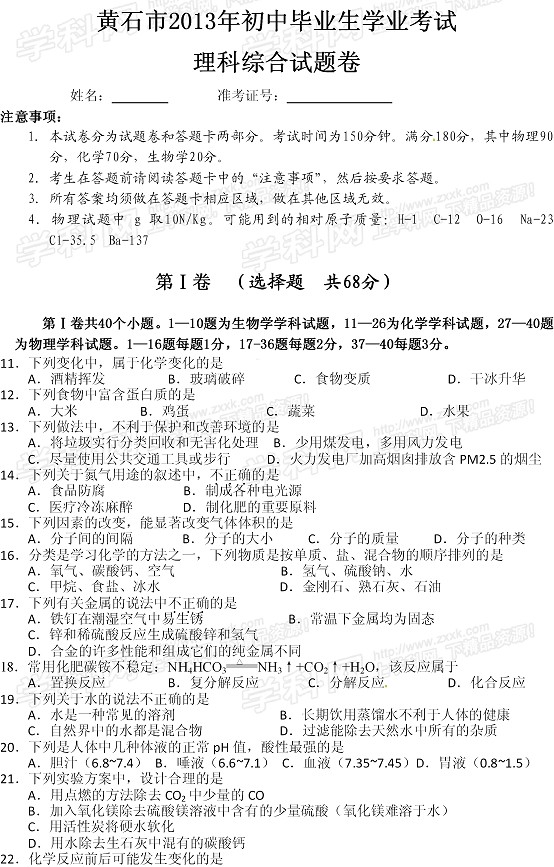 2025年湖北黄石中考时间及科目:6月20日至22日