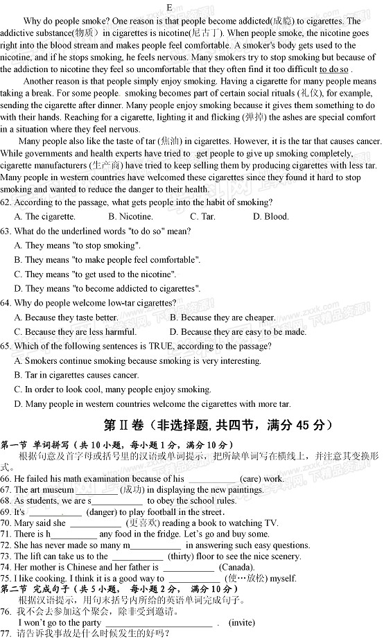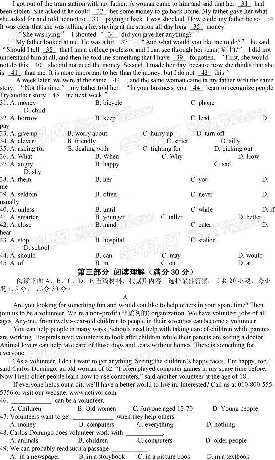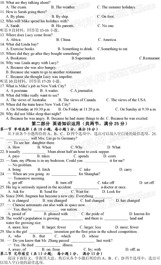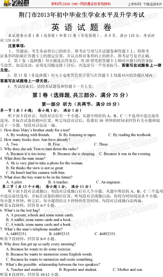 2013年湖北荆门中考英语真题(完整版)