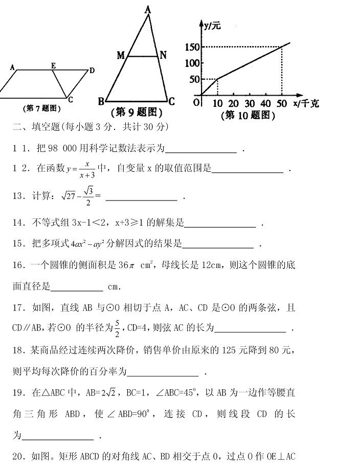 2000年黑龙江哈尔滨市中考数学真题及答案