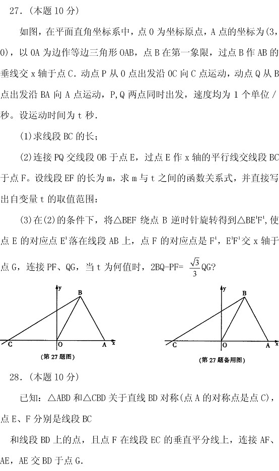 2013年黑龙江哈尔滨中考数学真题(完整版)