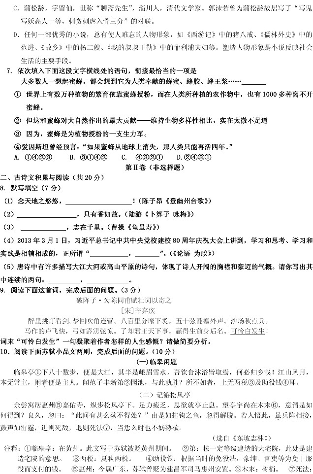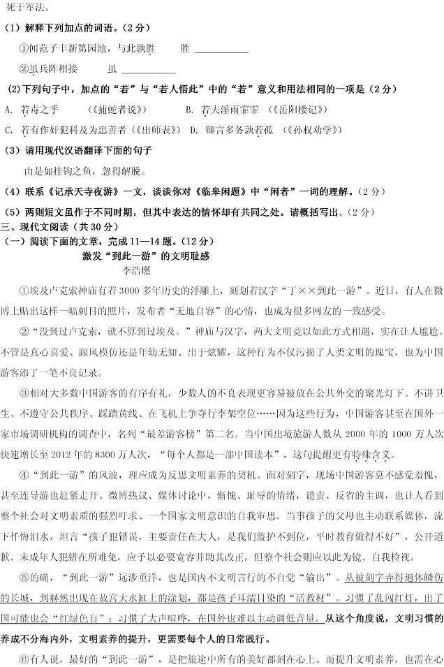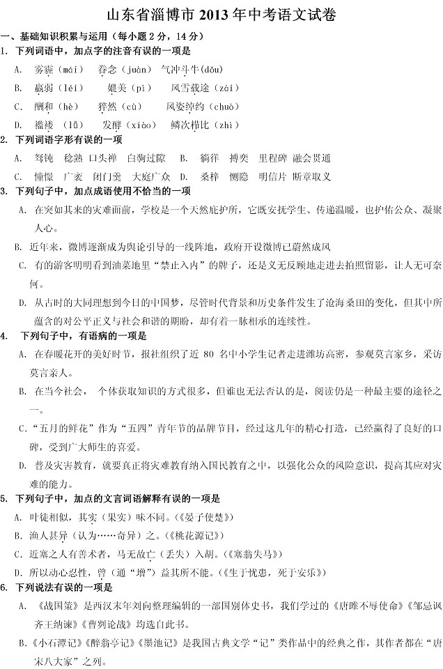 2013年山东淄博中考语文真题(完整版)