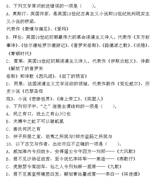 8.C[解析]《但丁的预言》是拜伦的作品。
