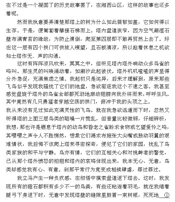 这样写的用意是:为后文写塔、树、鸟和谐共生作铺垫