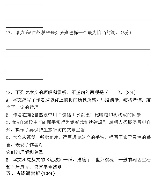 五、古诗词鉴赏