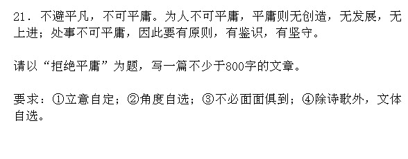 不由得又想起一群人,他们也曾坐在这考场,也曾为了理想而奋斗,而他们现在叫做“蚁族”,他们的住所叫“蜗居”。当社会的风霜吹凉了热血,抹平了棱角,当学过的知识没有用武之地,丢弃在脑海尽头,他们早忘却了身为高学历人才的骄傲,沉寂了,平庸了。最可悲的不是身居不盈尺的斗室,也不是食不果腹,衣不保暖,而是丧失了理想和追求,只剩下忍让顺从。没有人生来就是任人践踏的草芥蝼蚁,但如果有一颗甘于平庸、甘于卑贱的心,那的归宿就只能是蝼蚁。