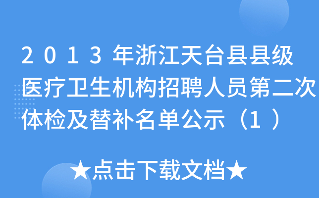 点击进入:天台县县级医疗卫生机构招聘人员第二次体检及替补进入体检名单
