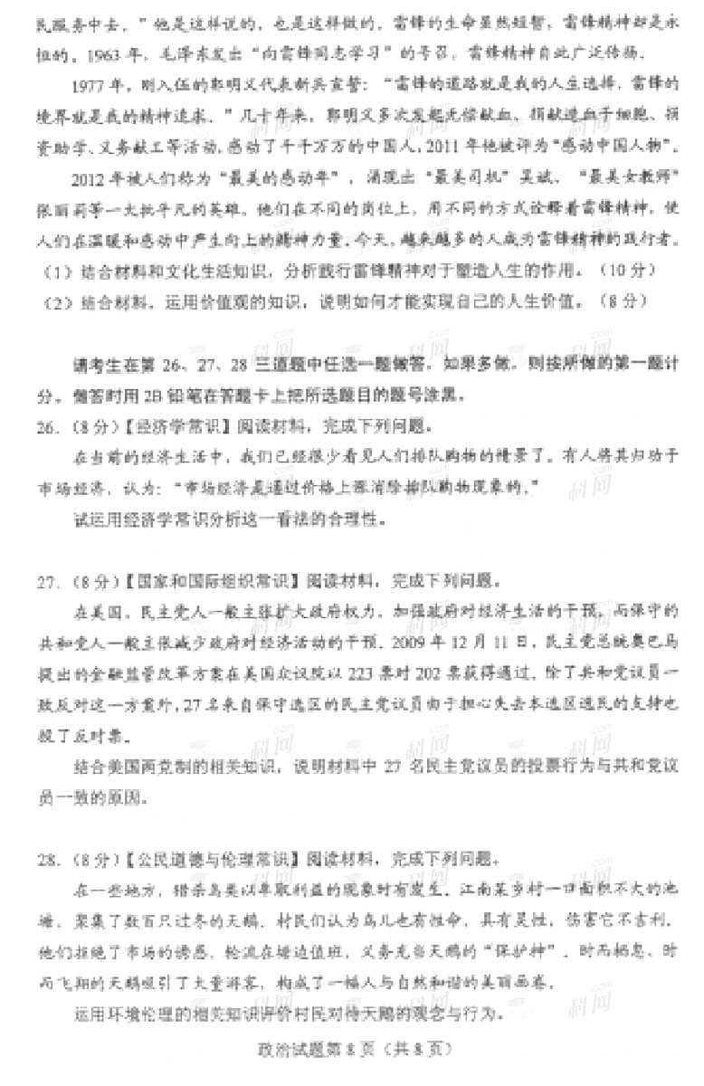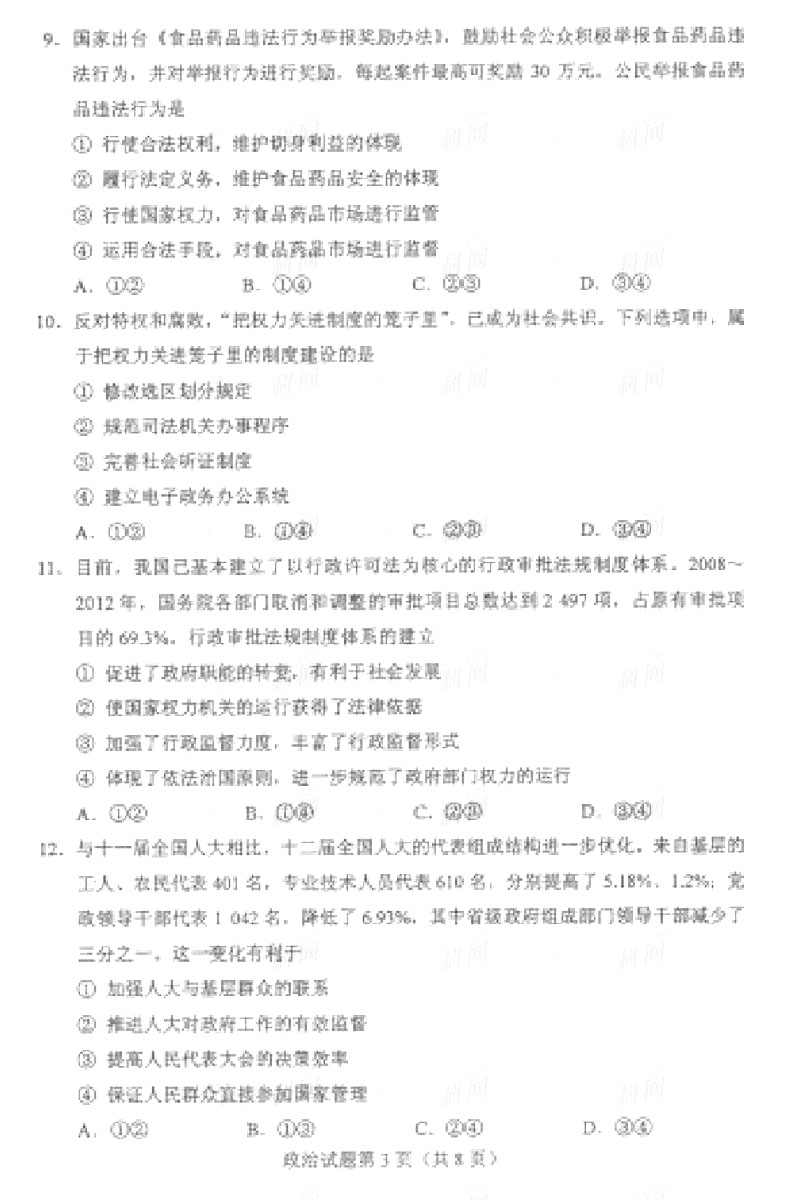 2013年海南高考政治试题及答案