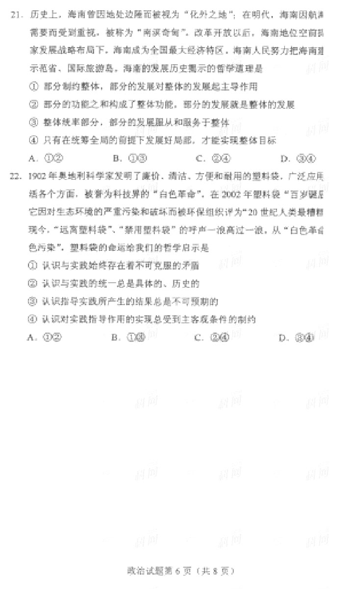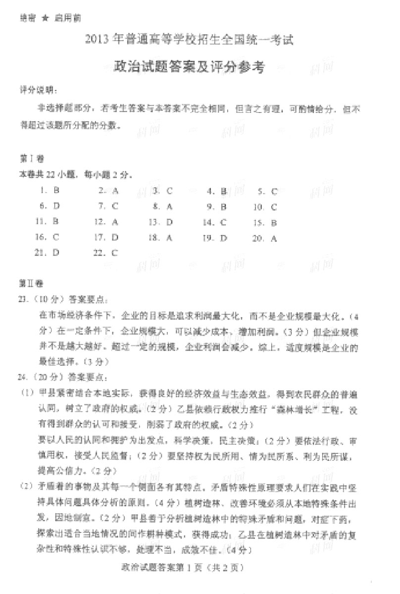 2013海南高考政治试题及答案