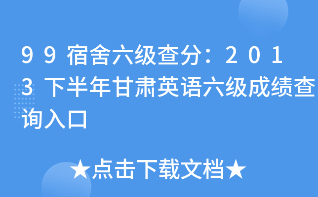 99宿舍六级查分:2013下半年甘肃英语六级成绩查询入口