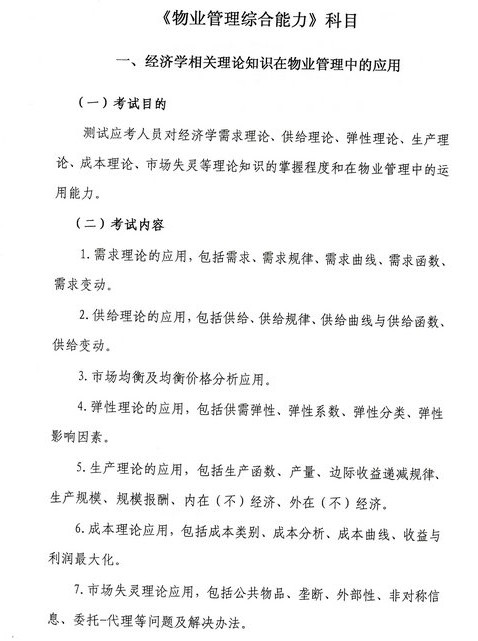 2014物业管理师《物业管理综合能力》考试大纲