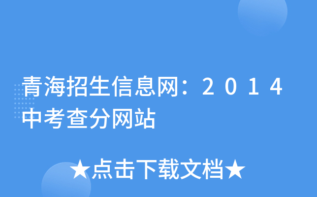 青海招生信息网是2014青海中考查分网站!点击进入:
