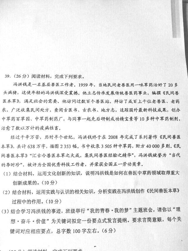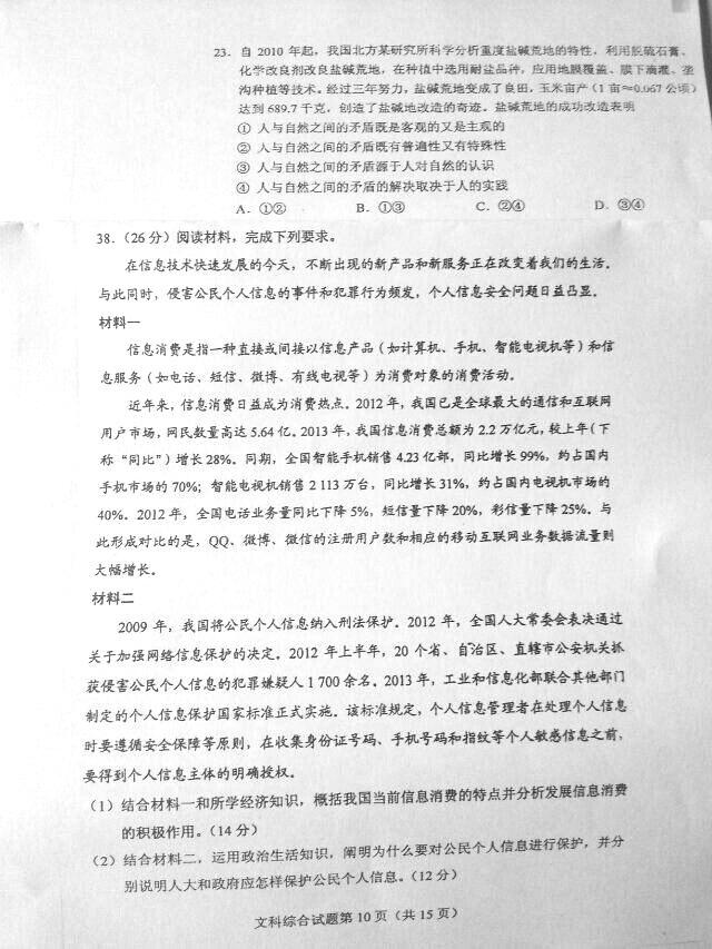 2014年甘肃高考文综真题(腾讯部分版).docx