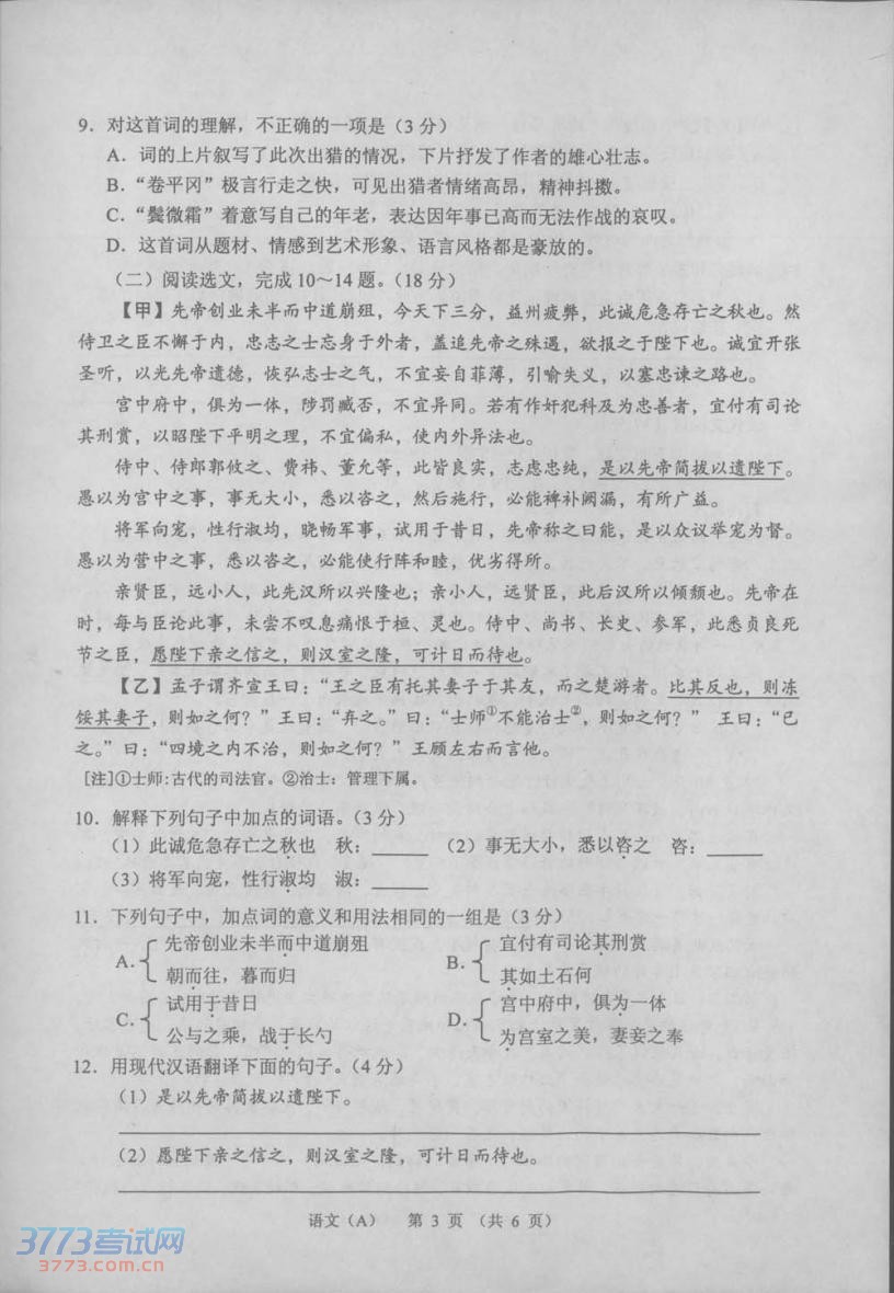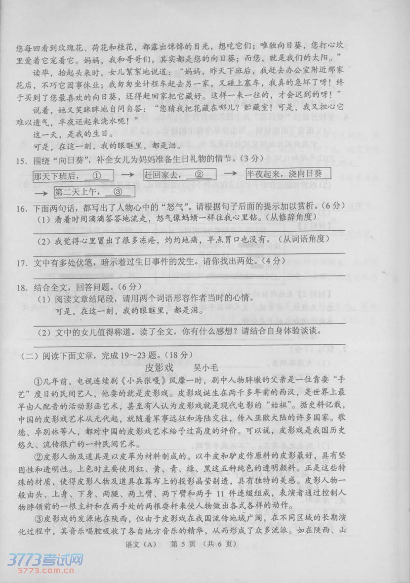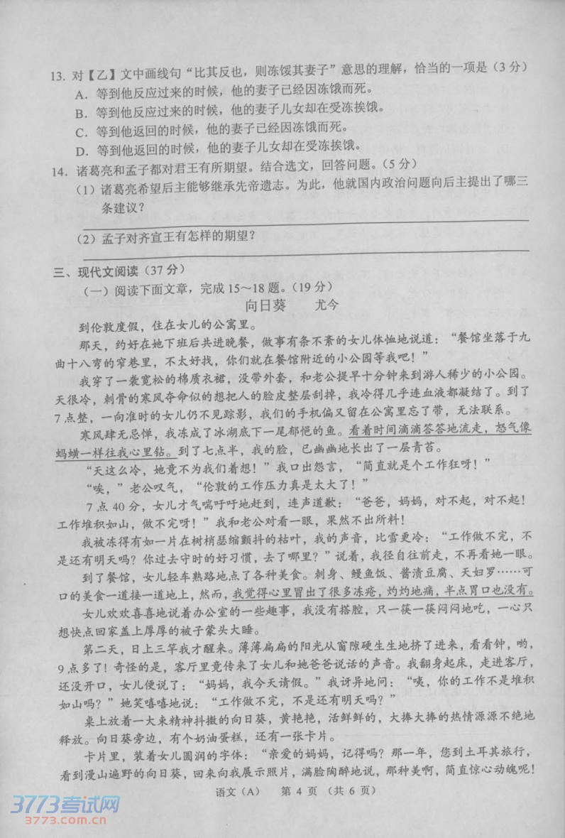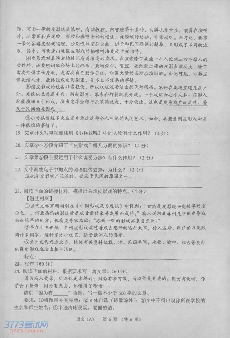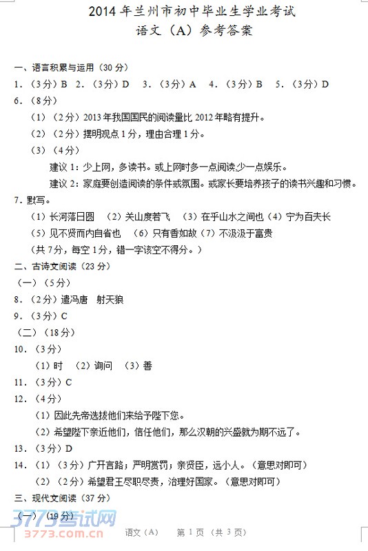 2014甘肃兰州中考语文真题及答案