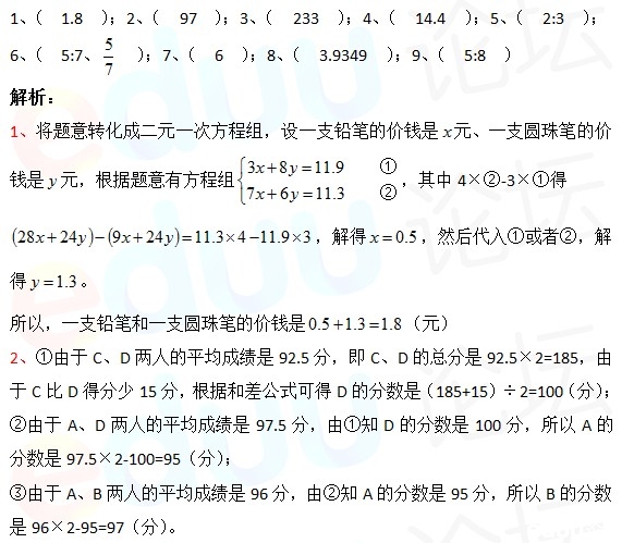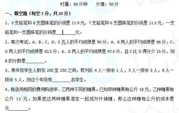 2014年湖南长沙长郡双语小升初数学试卷及答案(部分版)