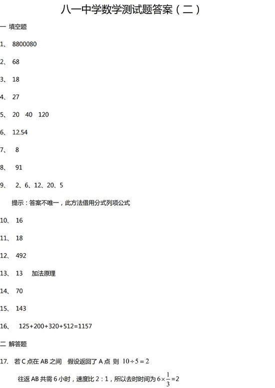 北京市八一中学小升初数学试卷及答案(二)已经公布,请广大考生及时查看以下试题内容,尽请关注!